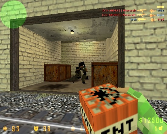 Еще один приятный сюрприз – карты КС 1.6 с текстурами Майнкрафт. Многие известные и популярные карты полностью переделаны. Вы сможете заметить вместо классических текстур блоки руды, угля, песчаника и других материалов, встречающихся в инди-песочнице. Некоторые из карт, например de_dust и de_dust2_2x2 стали действительно больше напоминать мир Майнкрафта, чем привычное окружение контры. С переделанными звуковыми эффектами вы получаете полное погружение в совершенно новую игру, объединившую в себе все лучшее из обоих миров: веселую, жизнерадостную графику и проверенный годами суровый геймплей легендарного шутера.